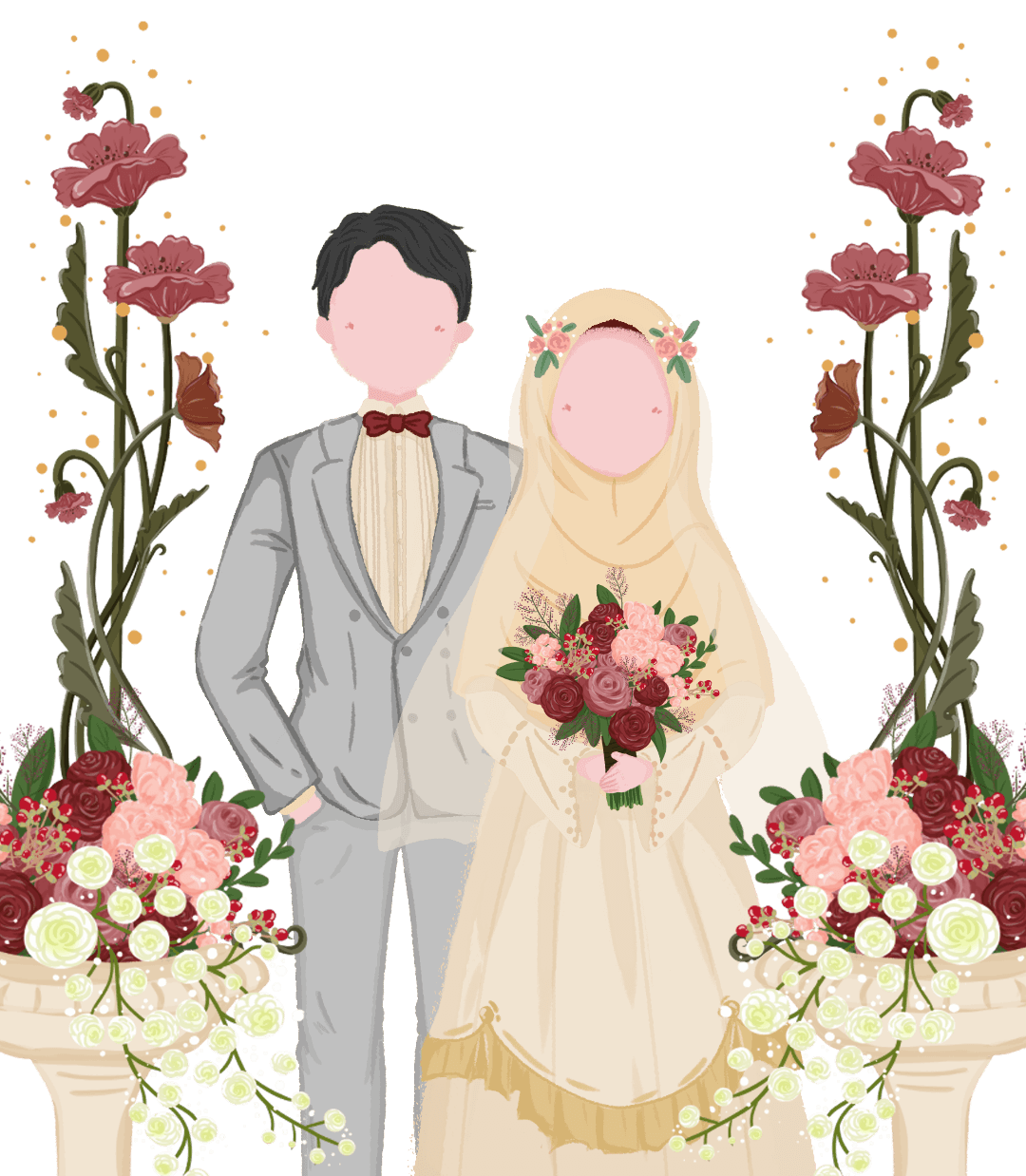 Dengan memohon rahmat dan ridho Allah Subhanahu Wa Ta'ala, kami mengundang Bapak/Ibu/Saudara/i, untuk menghadiri acara pernikahan kami pada: